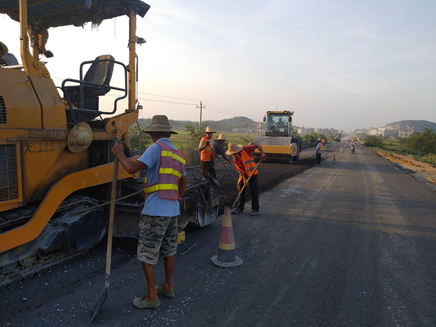 2017年 黃付線惠民工程基層攤鋪施工現(xiàn)場(chǎng)