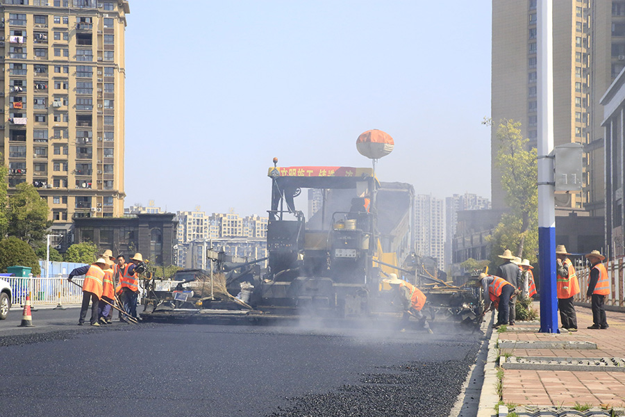 2019年8月,宜春經(jīng)開(kāi)區(qū)S311路面攤鋪現(xiàn)場(chǎng),工友們輔助路面兩側(cè)的分料、補(bǔ)窩等作業(yè)